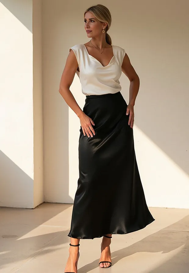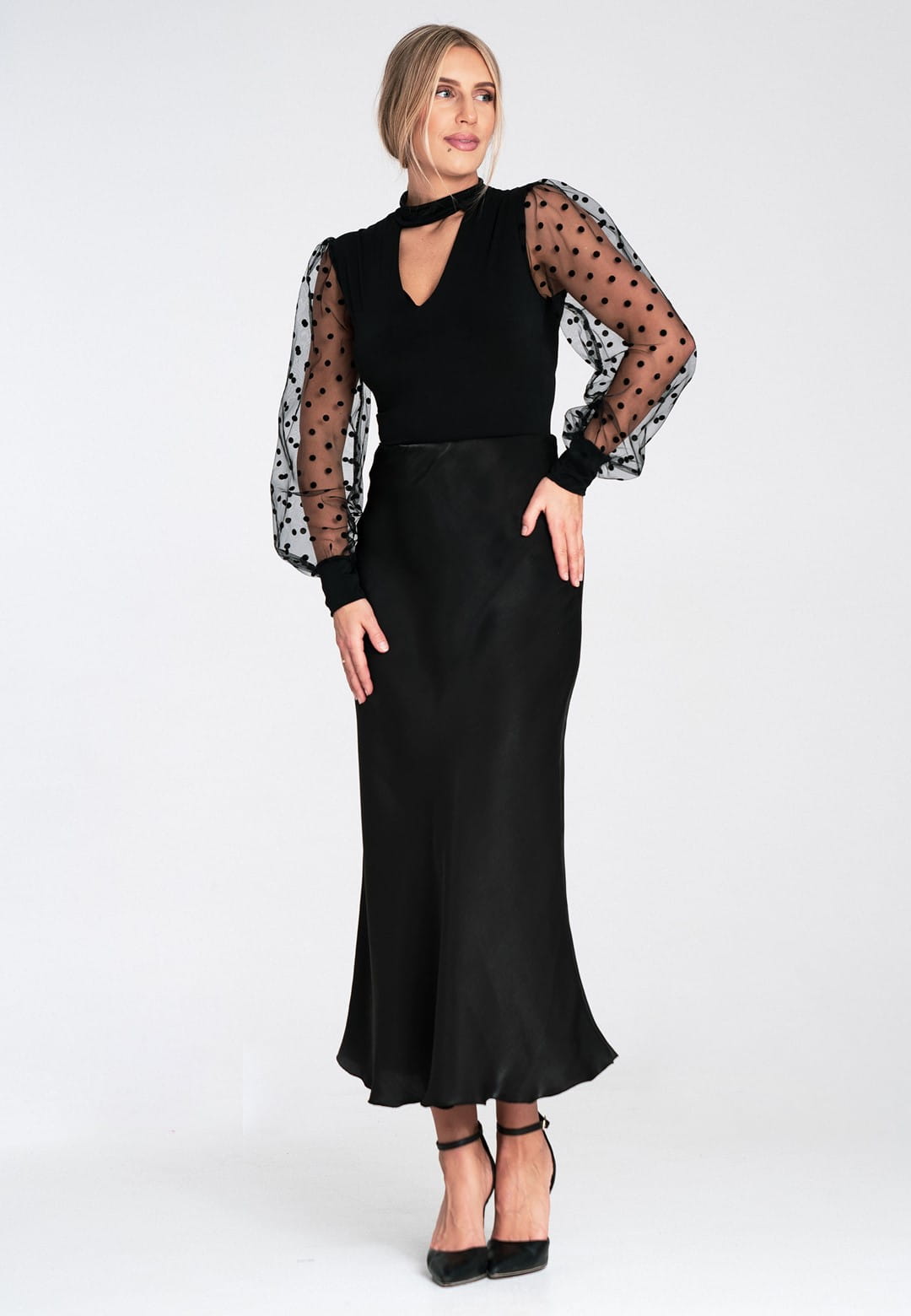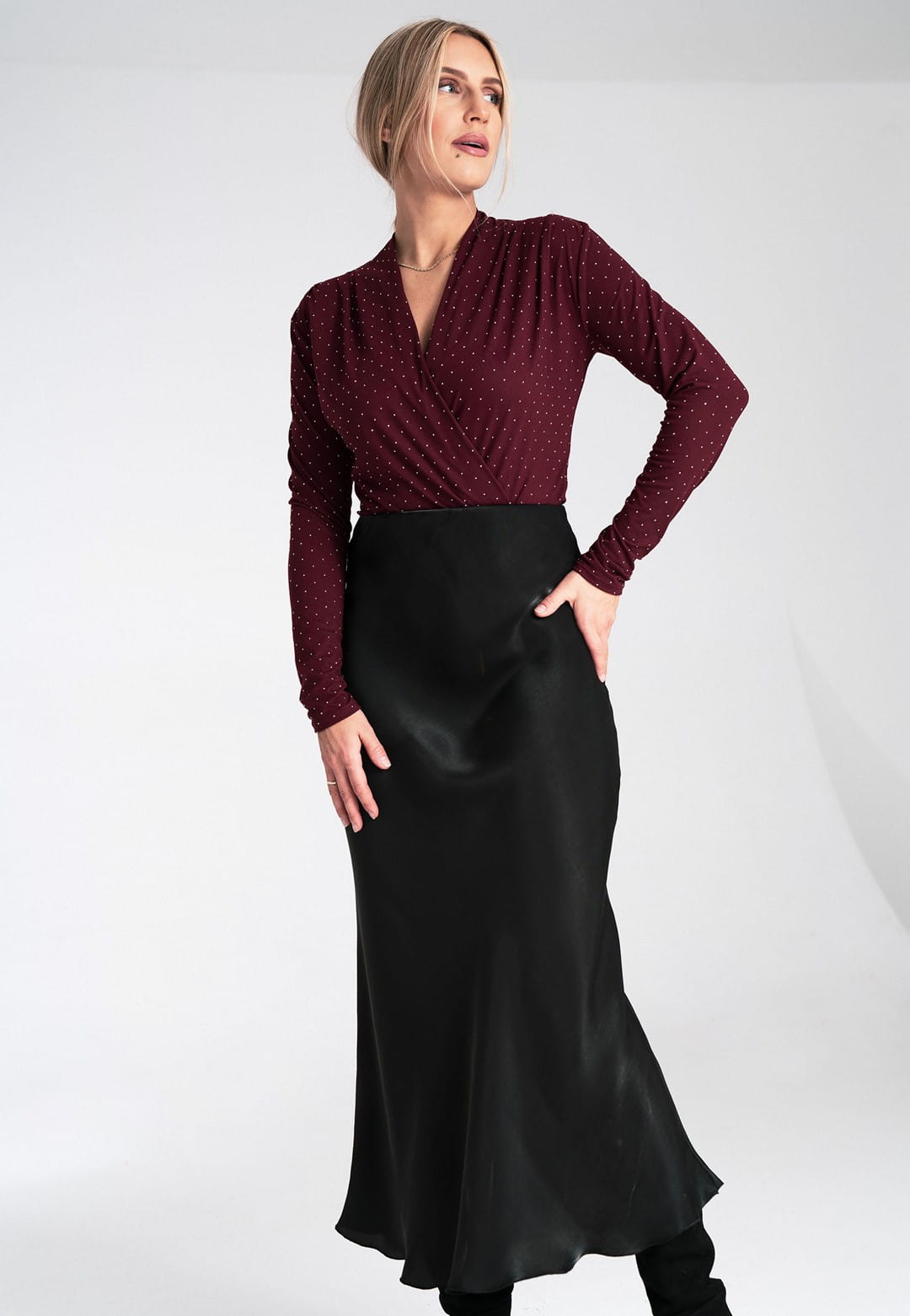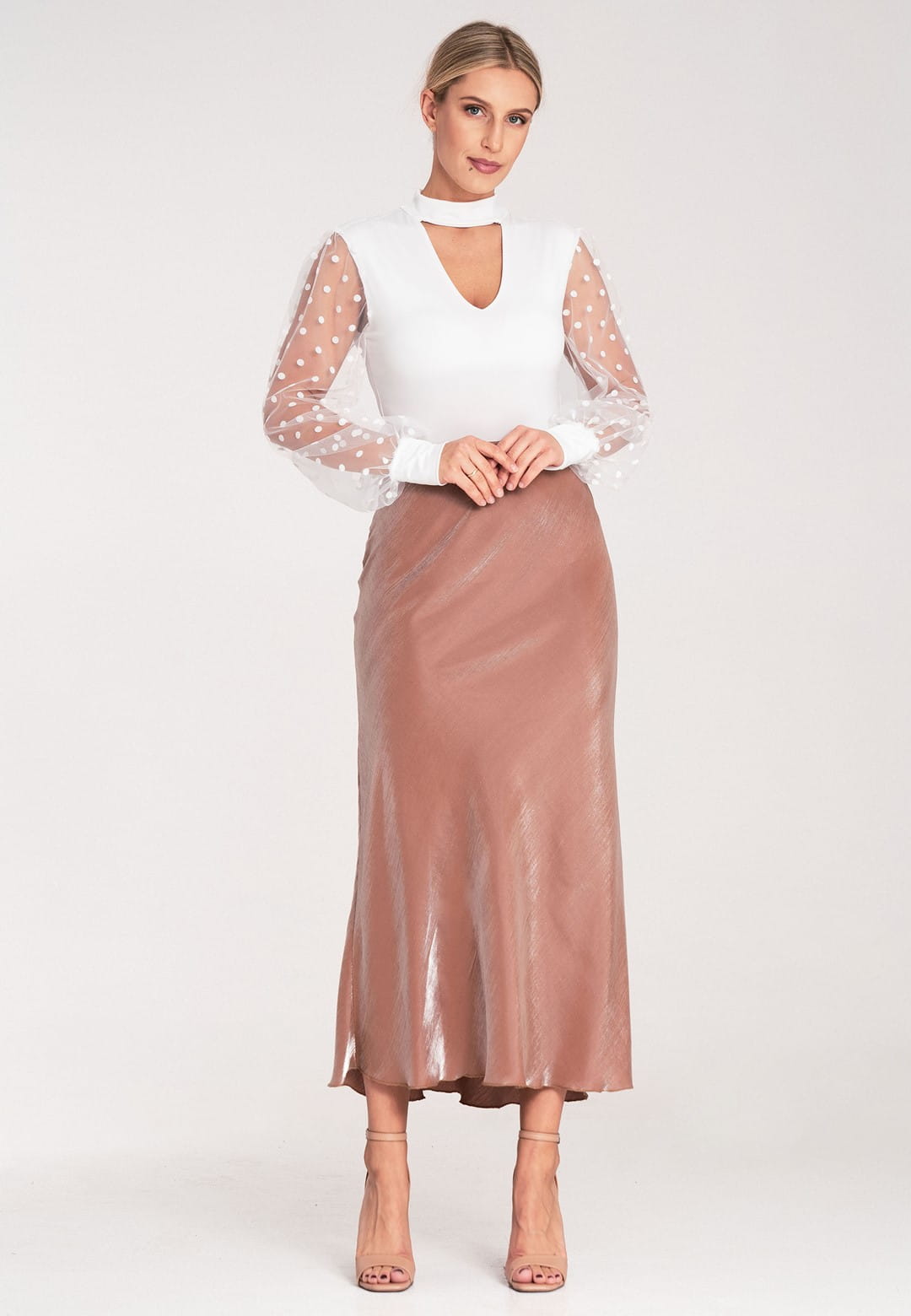 Satynowa spódnica to połączenia elegancji i wygody. Wykonana z wysokiej jakości mieszanki wiskozy i poliestru zapewnia trwałość, przyjemny dotyk i elegancki wygląd. Satynowy połyskujący materiał nadaje spódnicy luksusowy wygląd, dodaje szyku każdej stylizacji i sprawi, że będziesz wyglądać olśniewająco. Dzięki gumce w pasie doskonale dopasowuje się do sylwetki, zapewniając niezrównany komfort noszenia przez cały dzień. Długość midi to uniwersalna długość, która pasuje do wielu okazji – od codziennych wyjść po bardziej formalne spotkania. Ta spódnica satynowa to niezastąpiony element garderoby, który pozwoli Ci stworzyć niezliczone stylizacje – od casualowych z ulubionym swetrem, po eleganckie z koszulą i szpilkami.