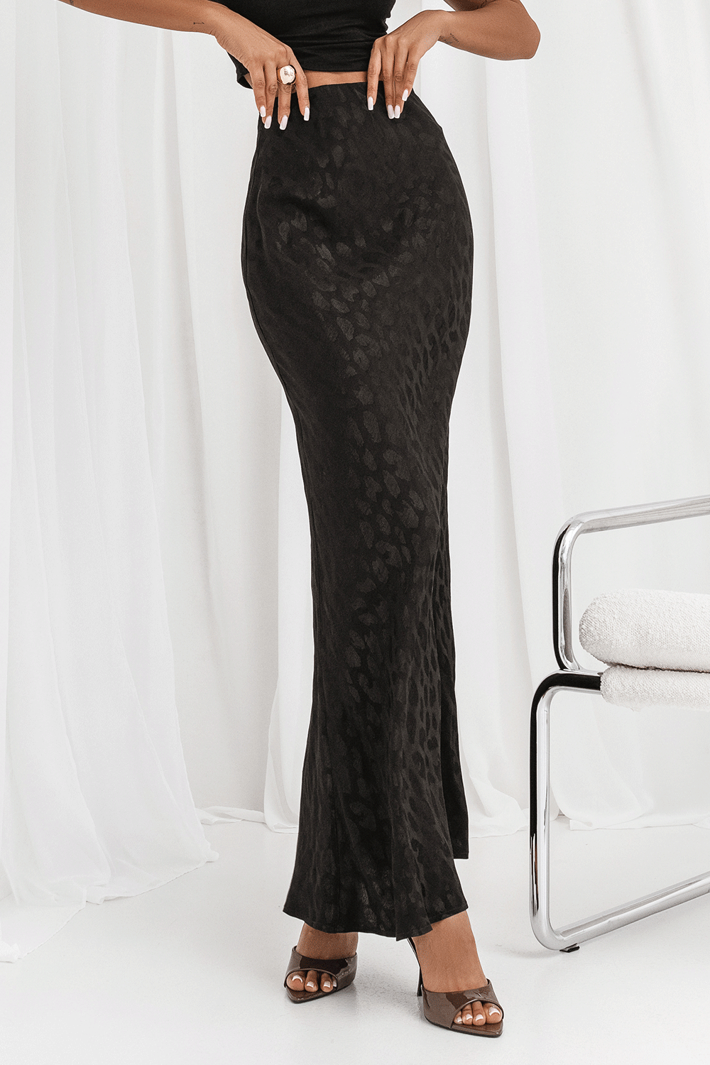 Spódnica satynowa to kwintesencja kobiecości i uniwersalności. Wykonana z wysokiej jakości wiskozy, z lekko satynowym połyskiem pięknie odbija światło, jest przyjemna w dotyku, przewiewna i delikatna dla skóry, co czyni ją idealnym wyborem na każdą porę roku dodając stylizacji luksusowego charakteru. Elastyczna gumka w pasie zapewnia idealne dopasowanie do sylwetki i maksymalny komfort noszenia przez cały dzień. Krój ze skosu doskonale układa się na ciele, subtelnie podkreślając kształty, jednocześnie zapewniając swobodę ruchów. Długość maxi to klasyczna długość do kostek, nadaje spódnicy elegancji i sprawia, że jest odpowiednia zarówno na formalne, jak i codzienne wyjścia. Ta satynowa spódnica to synonim wszechstronności. Z powodzeniem możesz ją połączyć z elegancką koszulą na wieczorne wyjście, jak i z luźnym swetrem czy t-shirtem na bardziej casualowe okazje. Jej lekkość i swobodny krój ze skosu gwarantują, że poczujesz się w niej wyjątkowo i komfortowo bez względu na okoliczności.