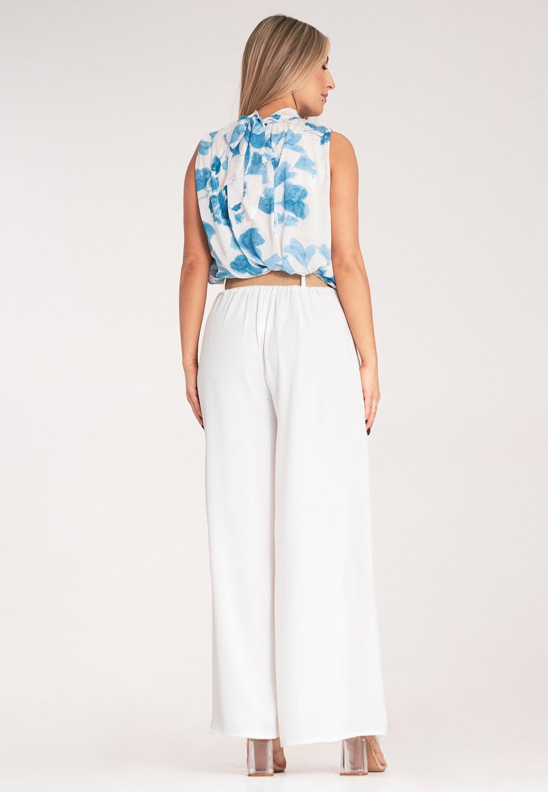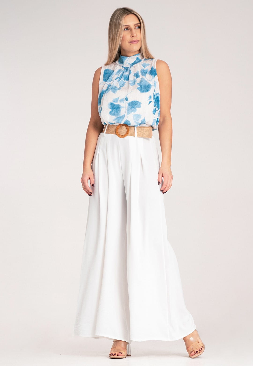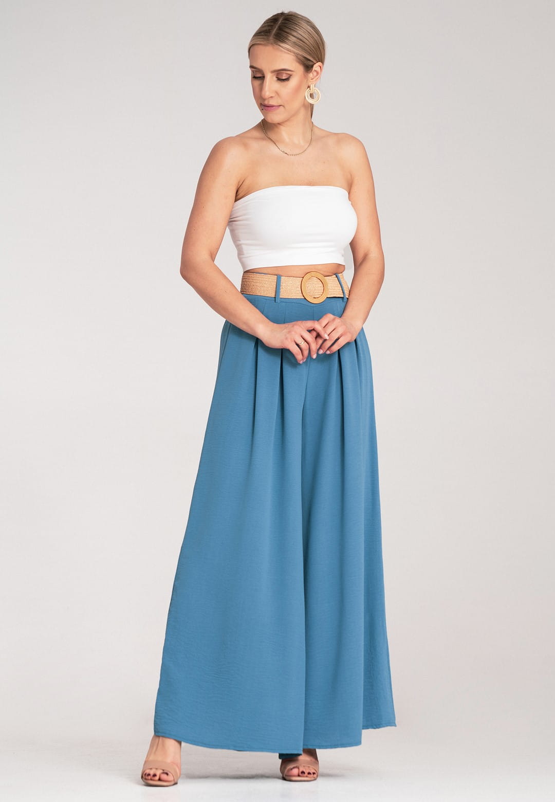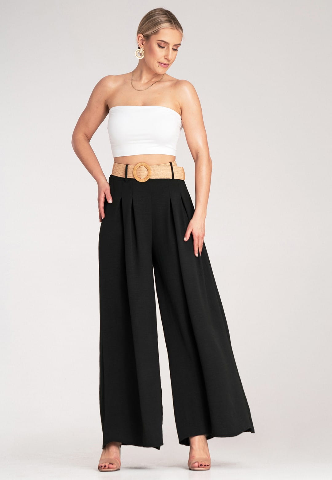 Spodnie szerokie nogawki to kwintesencja współczesnej elegancji. Wykonane z poliestru, który jest wytrzymały, odporny na zagniecenia i łatwy w pielęgnacji, idealny do codziennego użytku. Wysoki stan w spodniach szerokich podkreśla talię i optycznie wydłuża sylwetkę, zapewniając elegancki wygląd i komfort noszenia. Szeroki pas z przodu ze szlufkami dodaje szyku i pozwala na stylizację z paskiem. Elastyczna gumka z tyłu gwarantuje idealne dopasowanie do sylwetki, bez ucisku, zapewniając swobodę ruchów przez cały dzień. Pleciony pasek z ozdobną klamrą w zestawie, dodaje spodniom unikalnego charakteru i pozwala na natychmiastowe stworzenie kompletnej stylizacji. Efektowne plisy z przodu nadają spodniom elegancji i dynamiki, sprawiając, że nogawki pięknie układają się w ruchu. Szerokie, długie nogawki to najmodniejszy krój sezonu, który zapewnia komfort i swobodę, a jednocześnie optycznie wysmukla sylwetkę. Spodnie damskie szerokie nogawki to doskonały wybór zarówno do biura, jak i na specjalne okazje. Połącz je z elegancką koszulą lub dopasowanym topem, by stworzyć stylizację, która przyciągnie spojrzenia.